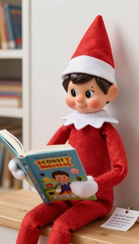 You could even have the elf leave a tiny bookmark or a note with a funny “review” of the book. This shows the elf has interests beyond just reporting to Santa.
