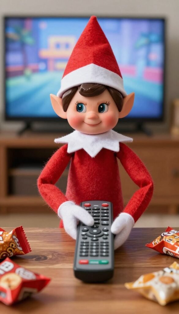 Who’s really in charge of the TV remote? Your elf, apparently. Pose the elf with the remote control, maybe surrounded by snacks, clearly in charge of the binge-watching.