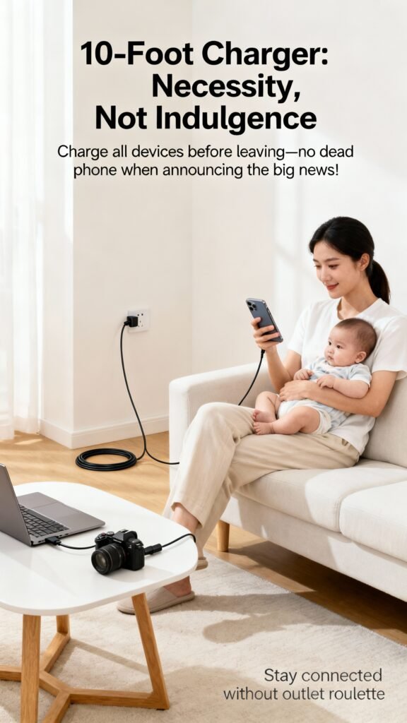 Because outlets are never where you need them. A 10-foot phone charger is not an indulgence, it’s a necessity. You’ll be scrolling, texting updates, and taking a million baby photos. Charge up all your devices before you leave so you don’t have a dead phone when you’re trying to announce the big news. Stay connected without playing outlet roulette.